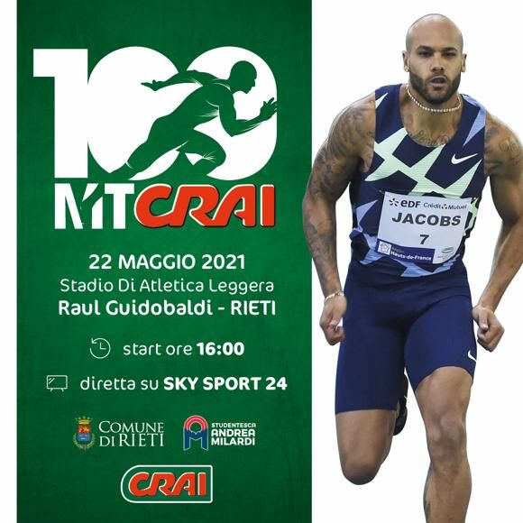 Rieti, il recordman italiano Marcell Jacobs sarà a “100 metri CRAI Città di Rieti”